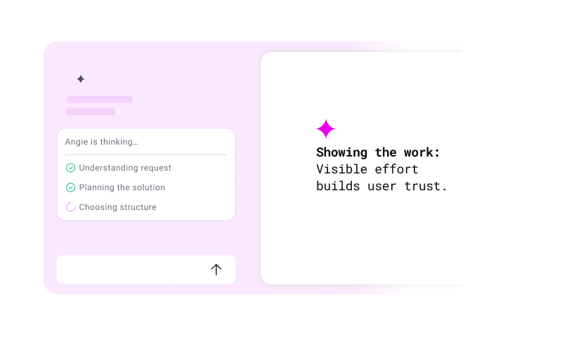 One of the most important design decisions was to show how Angie thinks, without overwhelming the user.