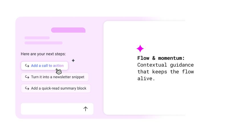 Most AI tools today are loud: gradients, sparkles, floating buttons. They scream “Look at me.”