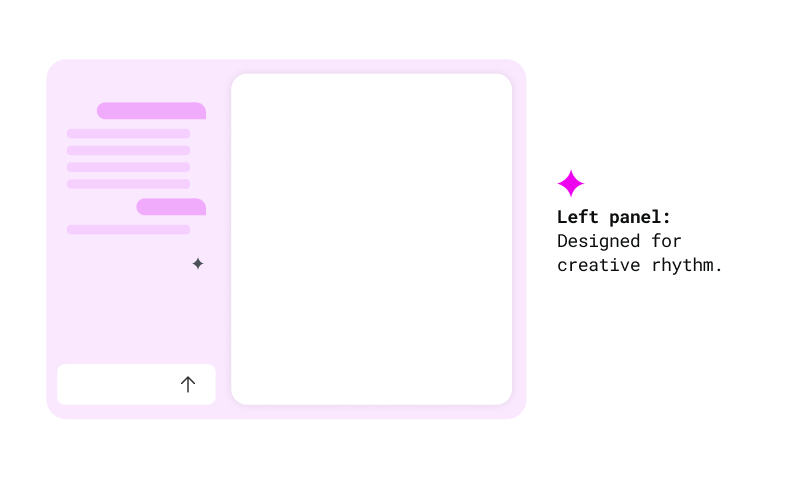 This was more than just a layout choice. It was about rhythm: prompt on the left, results on the right. Input followed by immediate feedback. It mirrors how creators naturally think and work.